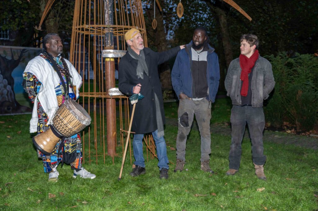 La mort de Papa Sakho, en janvier dernier, a choqué beaucoup de monde, aux Pays-Bas et au Sénégal, mais son importance et son héritage sont une source d’inspiration durable. Nous célébrons son héritage aujourd’hui même de différentes manières : en rassemblant les gens pour une petite exposition de l’œuvre de Sakho, avec une représentation théâtrale spéciale, à laquelle les personnes présentes peuvent participer, notamment en peignant la toile des chaises de plage, et enfin la présentation du nouveau Baobab, conçu par Momar Sakho, le fils de Papa Sakho. Une proposition de monument permanent.
